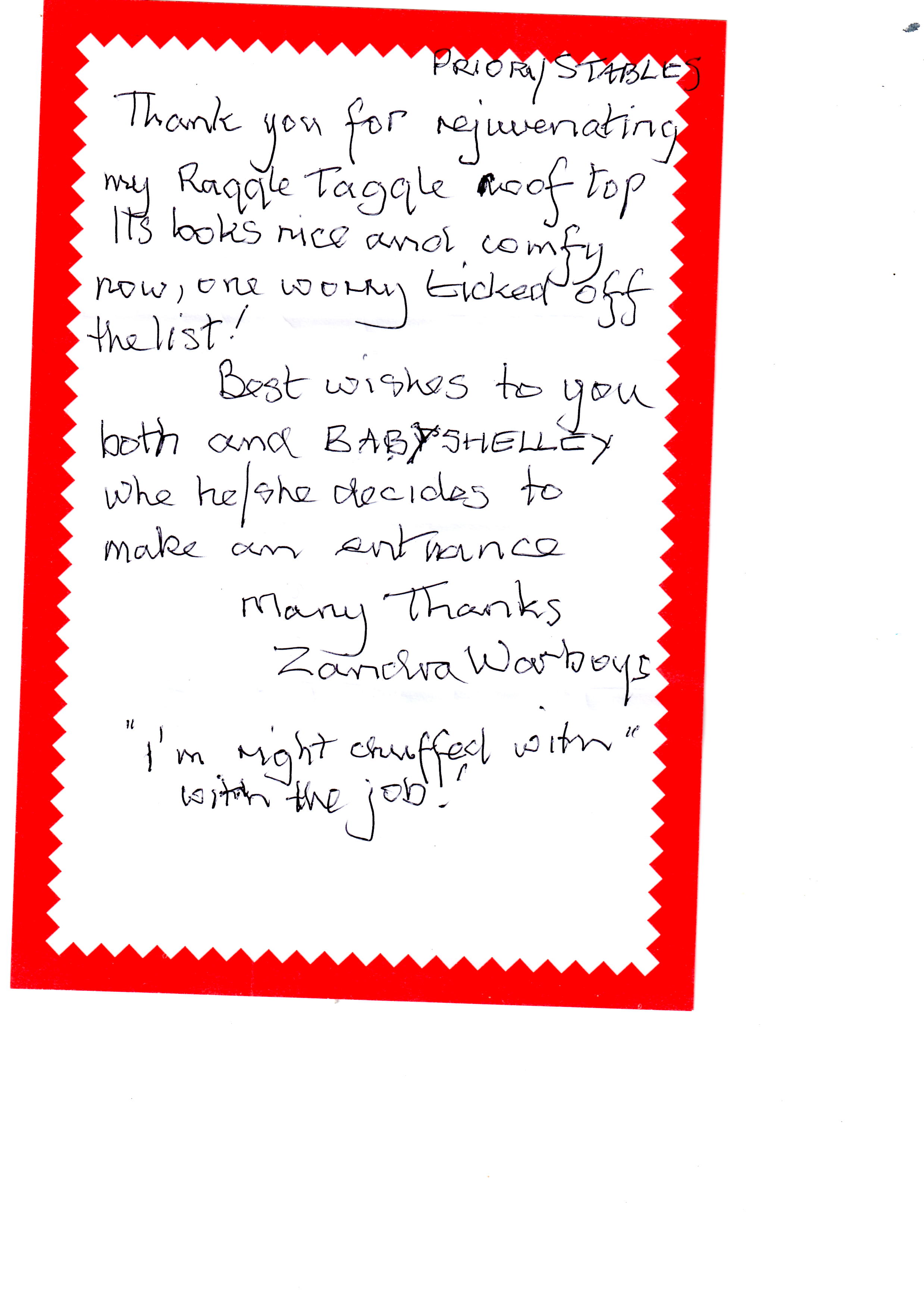 “Thank you for rejuvenating my raggle taggle roof top. It looks nice and comfy now, one worry ticked off the list!